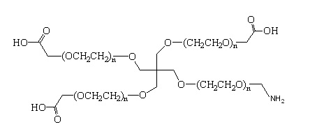 Bifunctional 4-Arm PEG reagents have two functional groups Acid and Amine at specific ratio of 1:3, 2:2, 3:1. The amine and acid functionality are for reaction with NHS ester and peptide coupling or conjugation chemistry. Bifunctional PEG synthesized via our proprietary chemistry to produce precisely predetermined ratios of the two functionality. These reagents provide extended application for multi-arm PEG as heterobifunctional crosslinkers.
